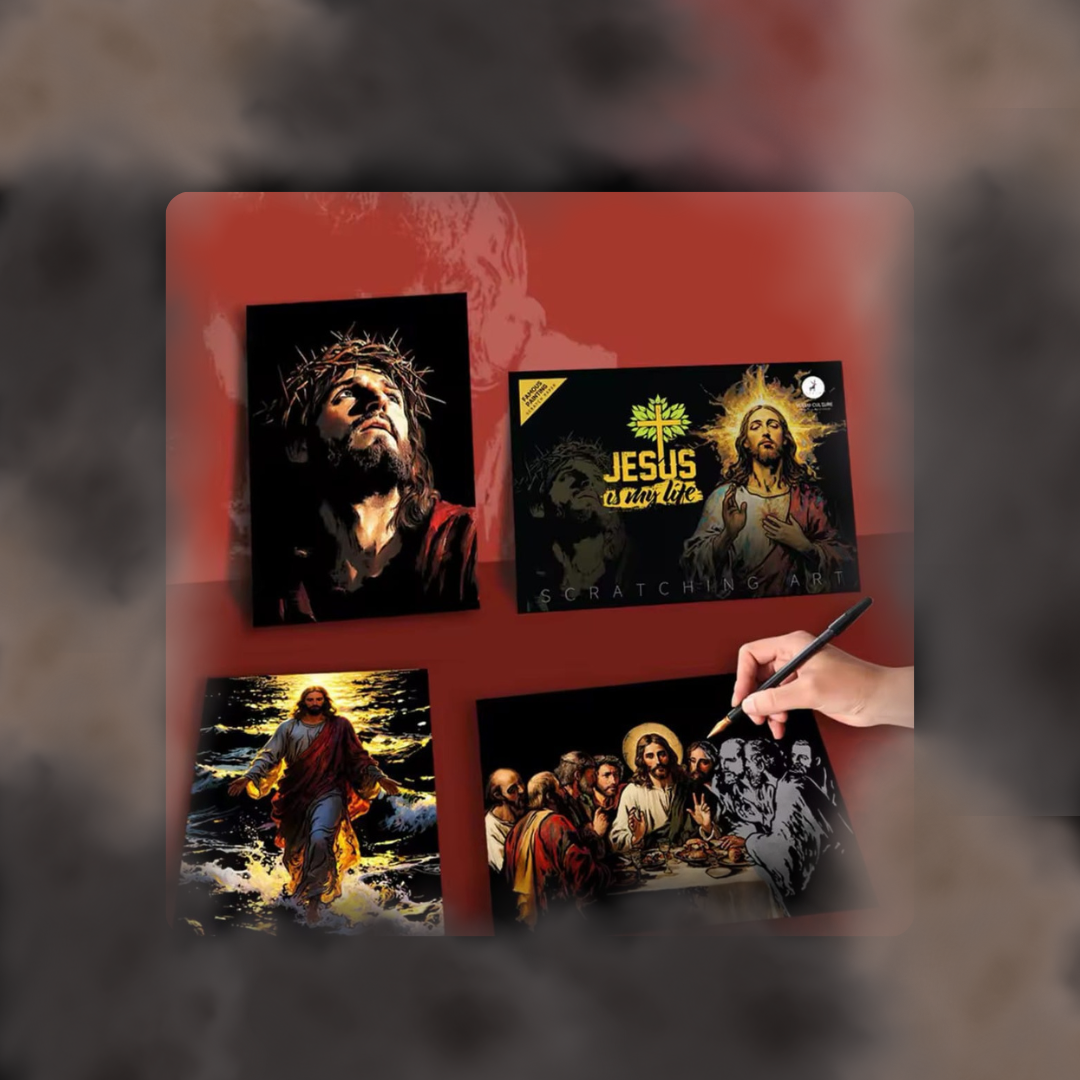 Carpeta con dibujos de Jesús para raspar- Incluye lápiz especial.